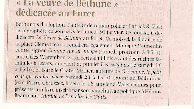 "La veuve" sera sur ses terres de prédilection puisuqe en dédicace au Furet du Nord de Béthune :